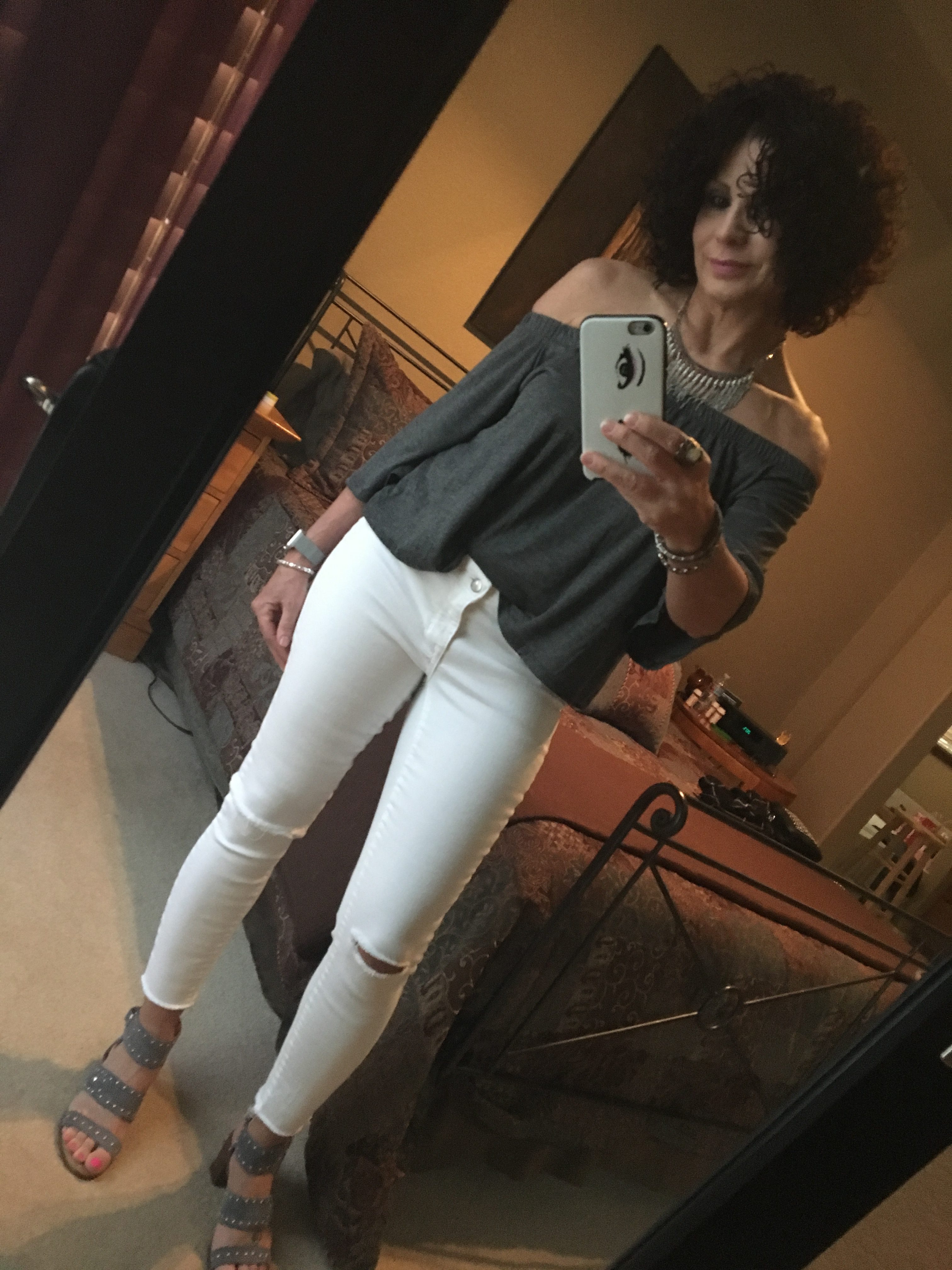 I love this top because it’s cropped enough to tuck into low waisted yeans and the elastic is very sturdy so it won’t rid up from your shoulders. I purchased this piece on sale at #Marshalls for $5 bucks! I paired it with one of my favorite jeans from #Target that I distressed myself. I like how gray and white go together. The studded block heels are #SteveMadden, very comfortable and stylish. I couldn’t find a link to the same ones but listed something similar. The necklace I can’t remember where I purchased the bohemian style necklace but I see them everywhere and should not be difficult to find. My favorite places to shop for necklaces are listed below. I find that a chunky necklace enhances the off-the-shoulder look. For more styling ideas visit my Instagram account at https://www.instagram.com/rdtalavera/?hl=en. Please contact me via this blog for an Image Consultation. My email is rdtalavera@gmail.com.