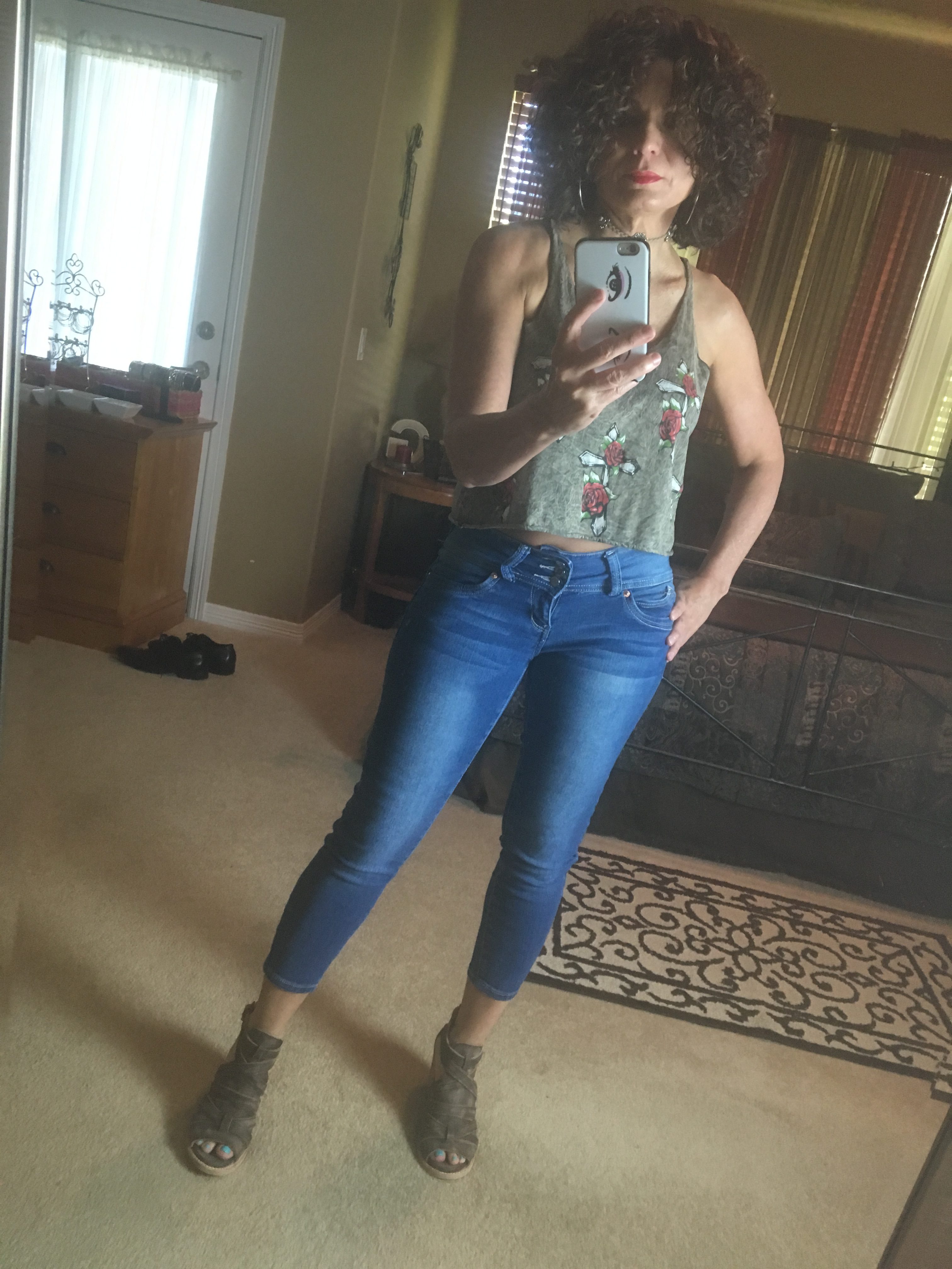 Here, I’ve paired a crop top I picked up at my local thrift store with one of my favorite cropped jeans from #YMI. The block heel sandals are from the #SteveMadden Freebird collection. I’ve linked similar shoes below. For more styling ideas visit my Instagram account at https://www.instagram.com/rdtalavera/?hl=en. Please contact me via this blog for an Image Consultation. My email is rdtalavera@gmail.com.