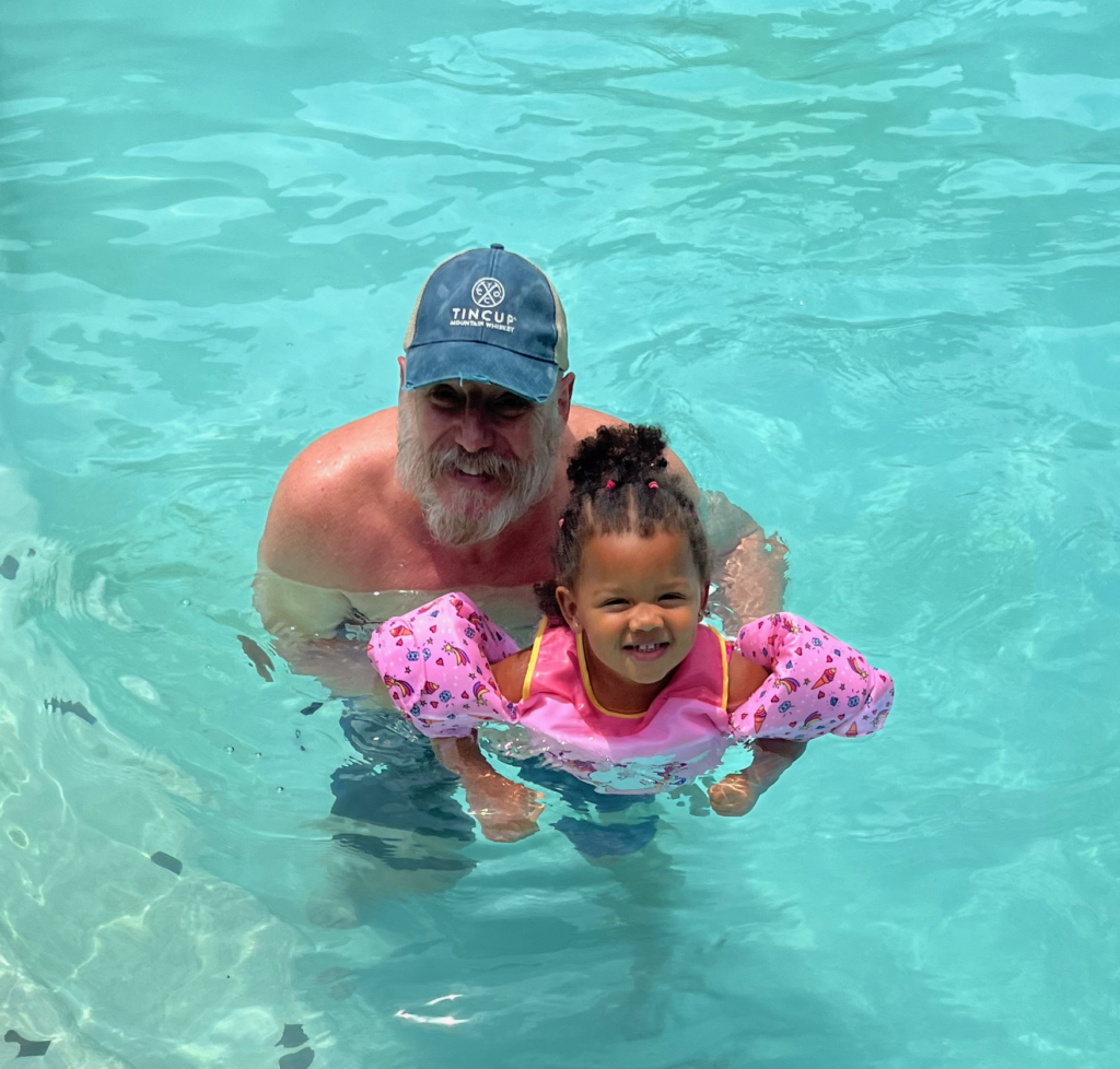 On our last day, the weather was good and we decided to go swimming. Grandpa, or as he prefers to be known, pop pop, splashed around the pool with his granddaughter for a few hours. The pool was a little chilly for my stepdaughter and me. We enjoyed the warm weather and watching them have fun.